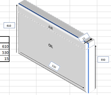 This one is filled with oil up to 550 mm high. The rest of the volume is occupied by air. All this under normal pressure and temperature conditions.