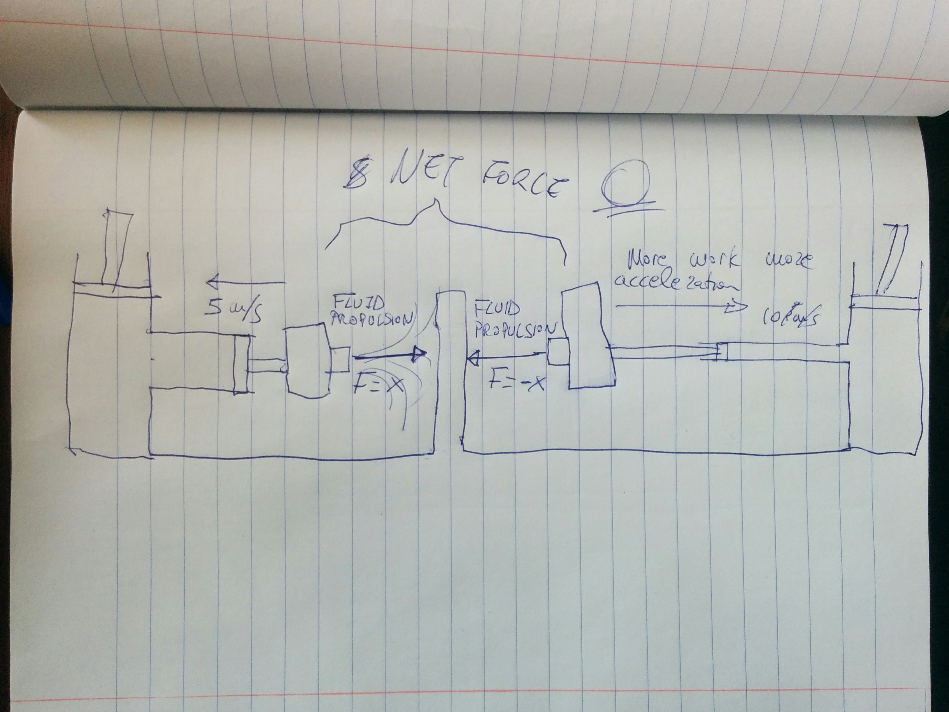 Ok, I am working with the maths, I will have in account even small details like statical and cinetical friction, I will have in consideration all forces, so there is a more clear idea if it works or not. Then if there is a force I missed, this force should be more easy to visualize and maybe that force makes no rig movement, but up to date, there is no evidence. Lets have a more empirical prove and it will be more easy to make critic. It can perfectly have the same propulsion intensity to the end, but one factor is clear, and this is the point that poeple miss. You got a propulsor with a weight in each side, that can throw back fluid por example to propulse itself, but the rythim will be settled by the areas of the pistons. So I have clear that if weights each piston system 100 kilos and is at 10 metres per second in the displacement and the other due to its area goes at 5 ms of constant acceleration for example, one will hit with more momentum that the other.  But this point everybody up to know have not been taken in consideration.
