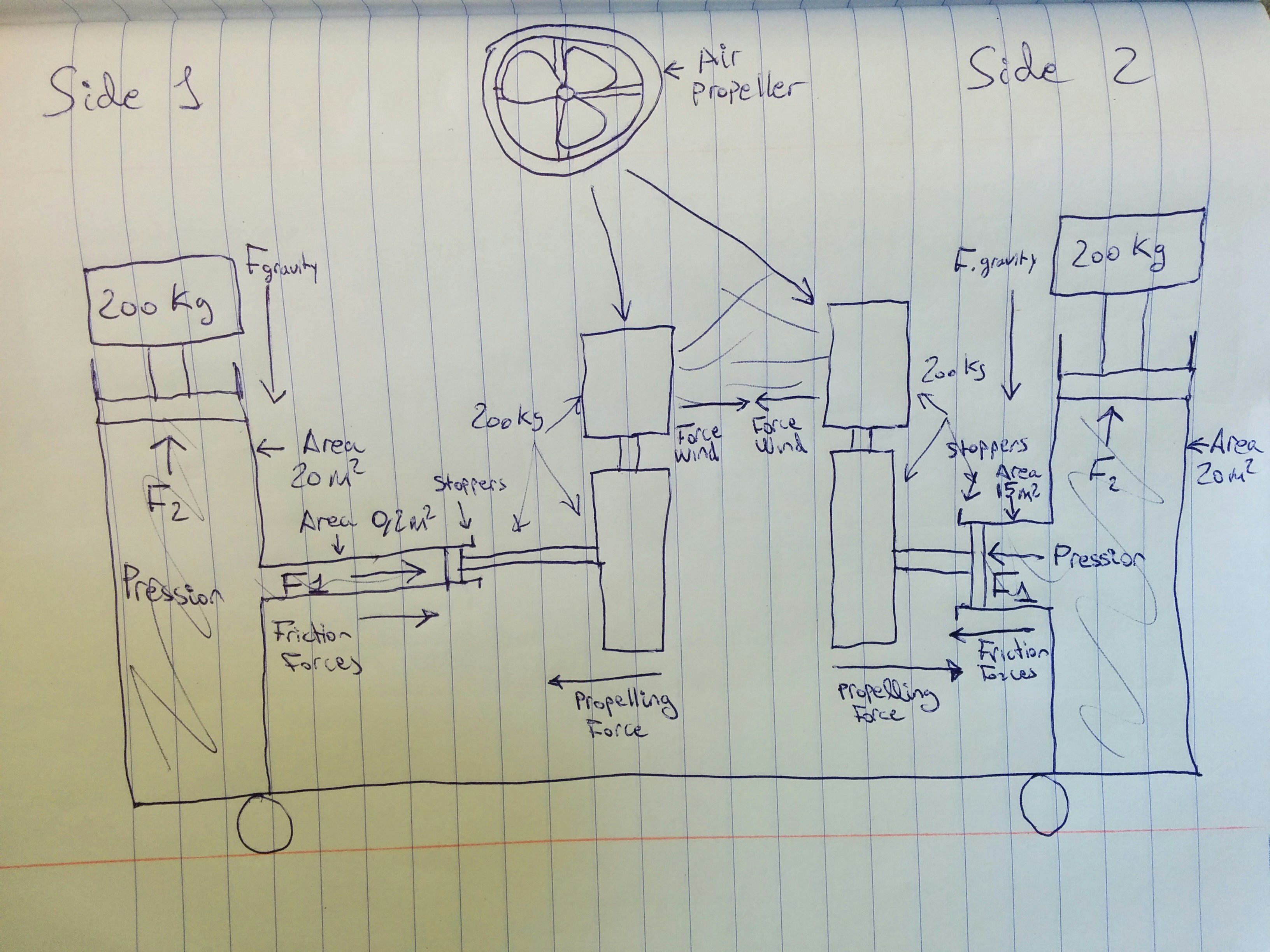 ***Note that you can increase and multiply the pressure forces difference by increasing the input piston area more on side 2 and decrease more the input piston area in side 1.