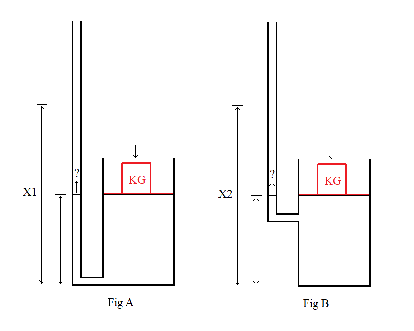 After applying the weight KG, the only difference in both cases is that the weight of KG is now balanced by the weight of the fluid rising in the tubes above the common initial  level.