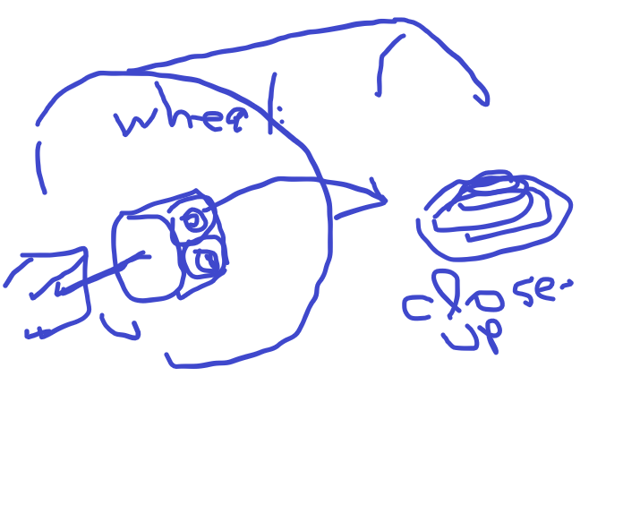 RedBarron's spinning wheel, showing the back of the tube that's sealed in the back.  Inside the tube is a small spinning wheel or small solid cylinder really that has "same sized mounds or mountanis" with valleys in-between, the valleys look like shallow X's since the mounds are actually very shallow:   The close-up on the right is a blow-up of a single mound that is on the surface of his spinning wheel, that was dremelled out to create the shape of the mounds.  And what's on the far left is the electric motor that has a rod connected to the spinning wheel with same-sized mounds, probably 8 or 9 of them in a row around the circumferance of the spinning wheel.