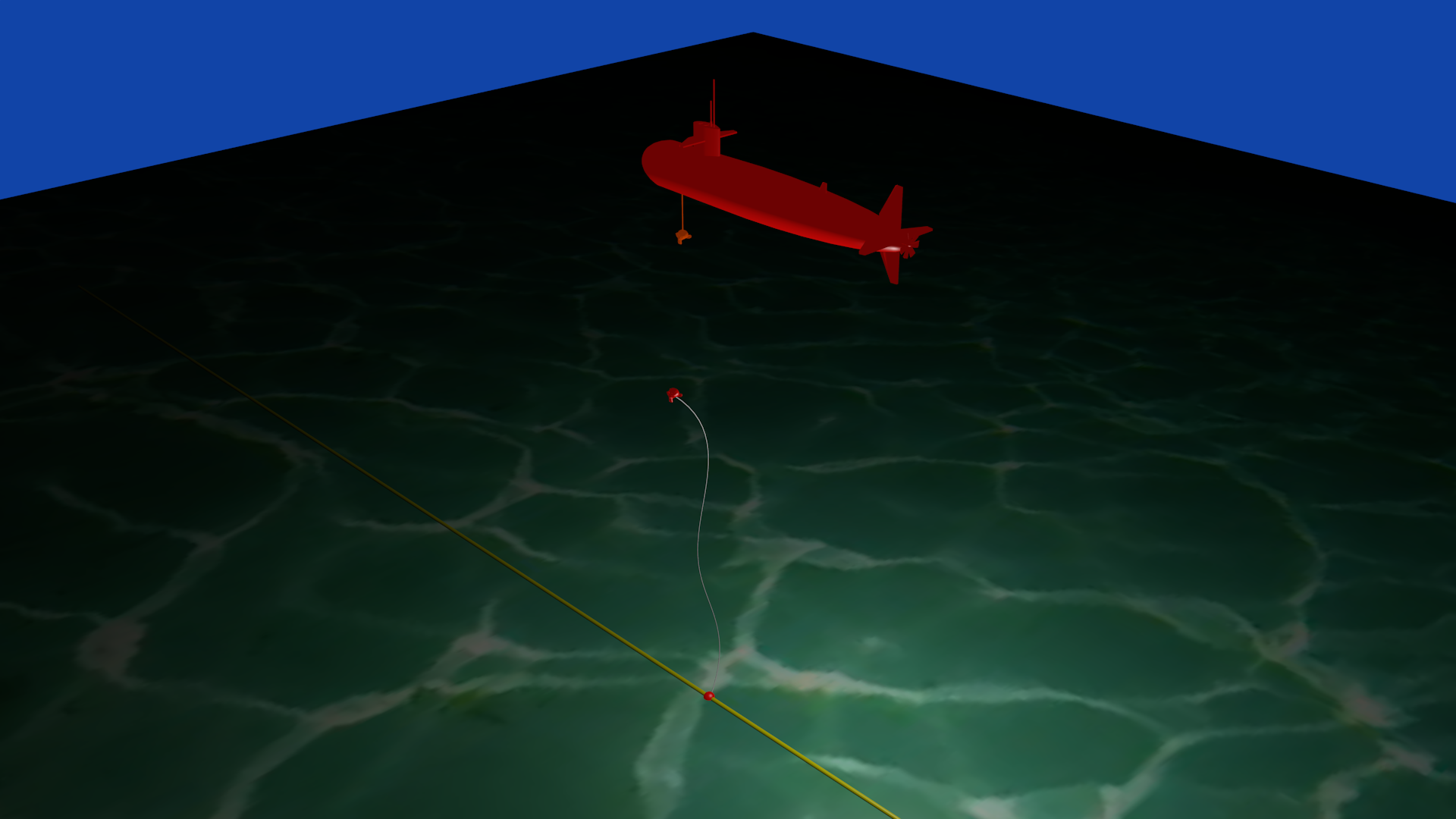 The principle is simple, the ship carry all the thing, and when she want a high debit connection, it send the thing at the bottom of the sea, and after the thing going back up with the link, and the connection is establish :)