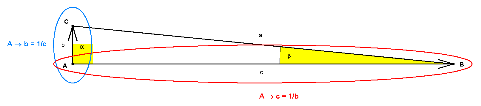 A: distance b in relation to c or c in relation to a