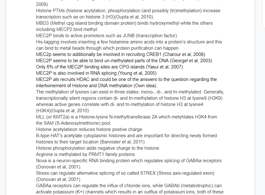Then it is time to tackle splicing and alternative splicing; lastly epigenetics, the overhyped thing that's important to just get an idea about: understand Agouti mice and DNA methylation, and understand that histones exist and why (specifically) acetylation leads to increased chances of transcription (by making it easier for TF's to bind promoter regions and facilitating RNAP II). You don’t need to understand what all things such as H3k4 (tri)methylation does, but if you understand the concept of acetylation, then other modifications will be understandable as they are conceptually similar. This will also have introduced you to post-translational modifications.
