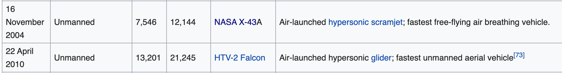 The aircraft below have a recorded top speed of 7,546 mph and 13,201 mph respectively.  So it would be within the realm of possibility for these UFOs to be unmanned craft piloted / navigated by advanced A.I. capable of going twice or three times as fast as the Super Hornets and directing themselves to a predetermined point incredibly quickly.  But the propulsion is another mystery as they had no evidence of a traditional propulsion mechanism. Screenshot 2020-05-04 at 23.04.58.png