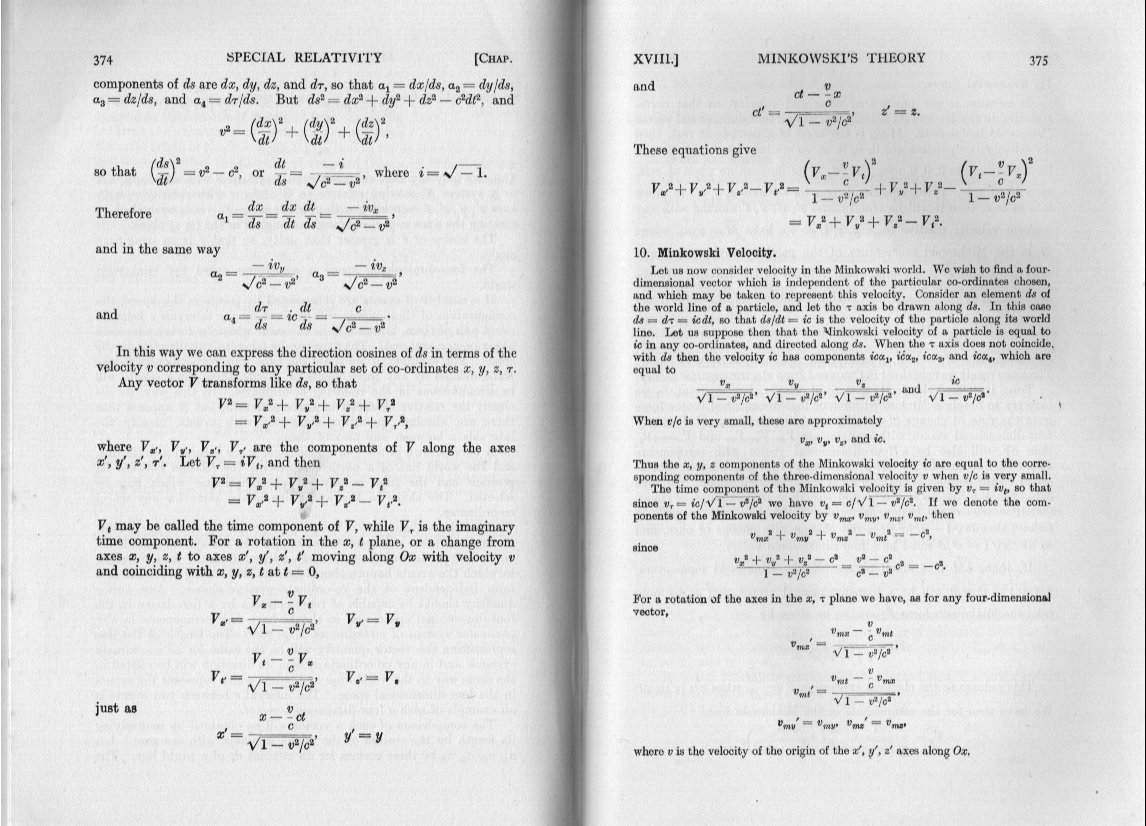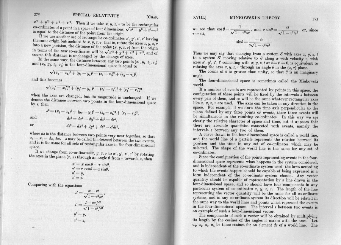 It is worth noting here that, as the story goes, when Einstein first became of aware of Minkowski's paper, he mumbled something about mathematics muddling up good physics.