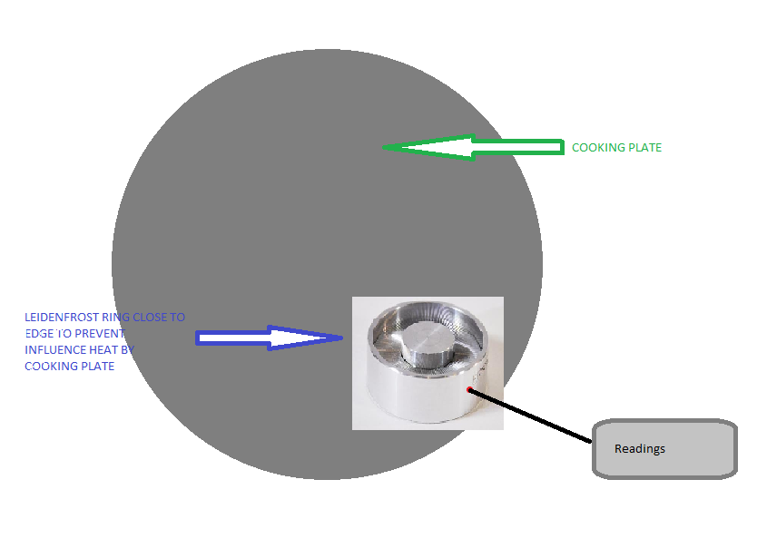 Okay I'l start from beginning to finish. I am with a friend of mine conducting an experiment with the Leidenfrost effect for our graduate year. Our goal is to create a system which is able to generate electrical energy using the Leidenfrost effect. Our setup looks like following: We have an electrical plate which heats up the ring, the plate is not capable of using a certain temperature. On the plate we put the Leidenfrost ring, with water in it of course, on top of that a little alluminium circle with holds 4 magnets which generates energy using the Lorentzforce. But when conducting this the Leidenfrost ring has to have a precise temperature to work correctly. This temperature is 210 degrees celsius. We thought we could just use a IR thermometer but these apparently don't work all to well with aluminium because of the emissivity. So now we are looking for a way to measure this temperature with an easy as possible way. Our budget is not crazy big and our knowledge about physics also isn't all too good. We know the basics and we are trying to accomplish our goals. Sorry for not being too clear about it and I hope this helps. My English is not all too good.