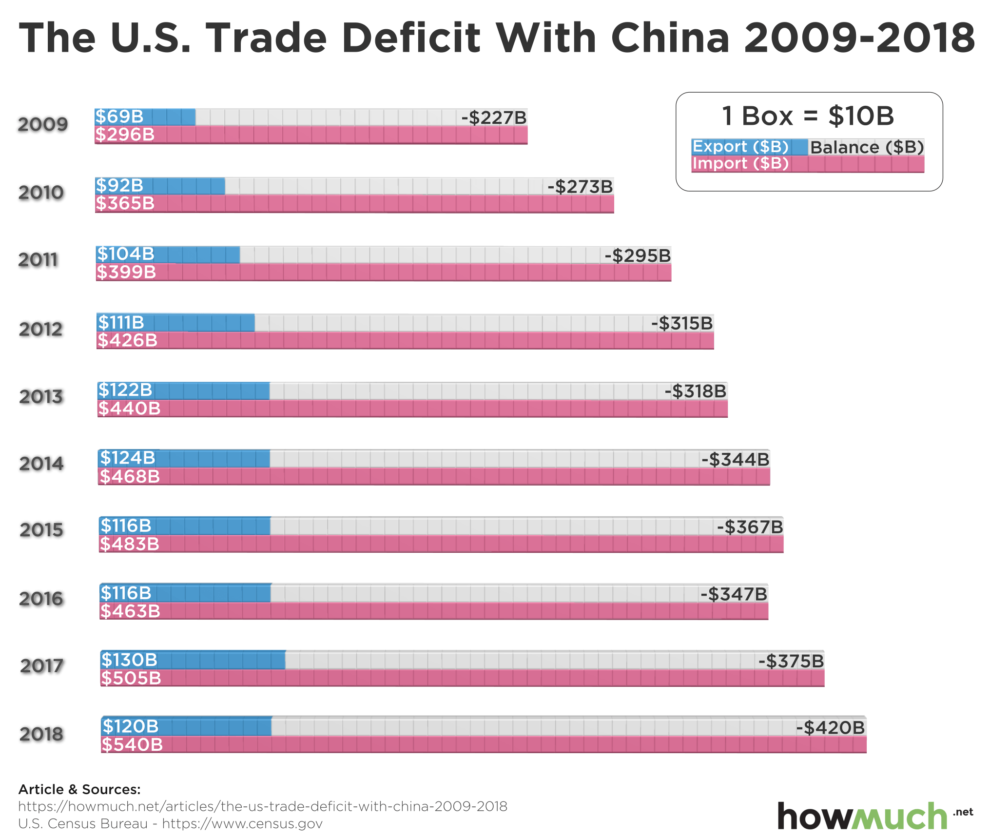 In 2019 the trade deficit with China was $345 billion. Trump seems to have restored the trade imbalance back to where it was at the end of Obama's term.