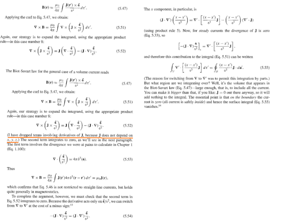 Above they derive that curl of B is uJ. I know they use the identity