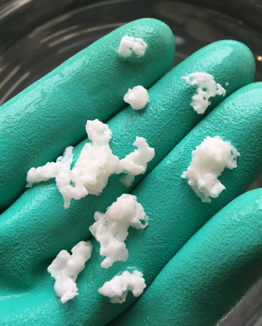 but I have since come to find that all it does is collect and crystalise on contact with <30ºC temperature (i.e. cold) water.