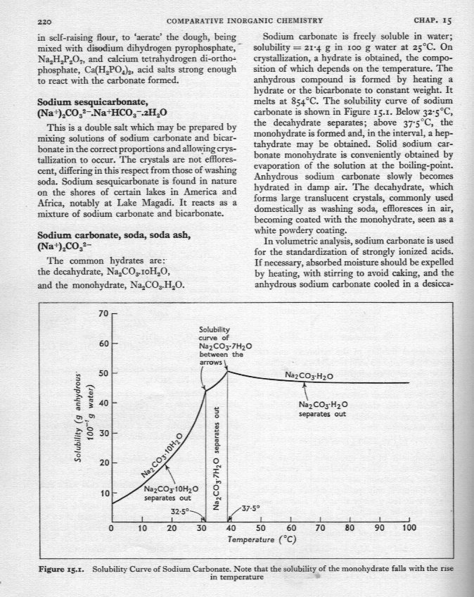 studiot: I see clearly from the diagram that Sodium Carbonate only becomes soluble as the surrounding heat rises, losing its hydrate in the process, this I can confirm. Looking further online it seems that the crystallisation process occurs as the dry powder is an anhydrous compound and in this case can absorb water, which then becomes the water of hydration and thus crystallises.