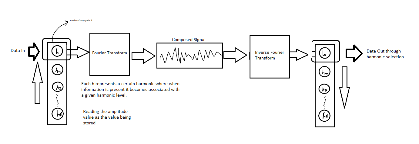 Would it be possible, hypothetically, to store information using the Laplace transform to change signal data into a signal representation and then stacking signals over and over again until you have a larger and more "complex", using the term complex as a way to say that it would be a very large amount of signals stacked on top of each other, signal. Which you can then use the inverse Laplace transform to select certain harmonic levels to retrieve original signal data?