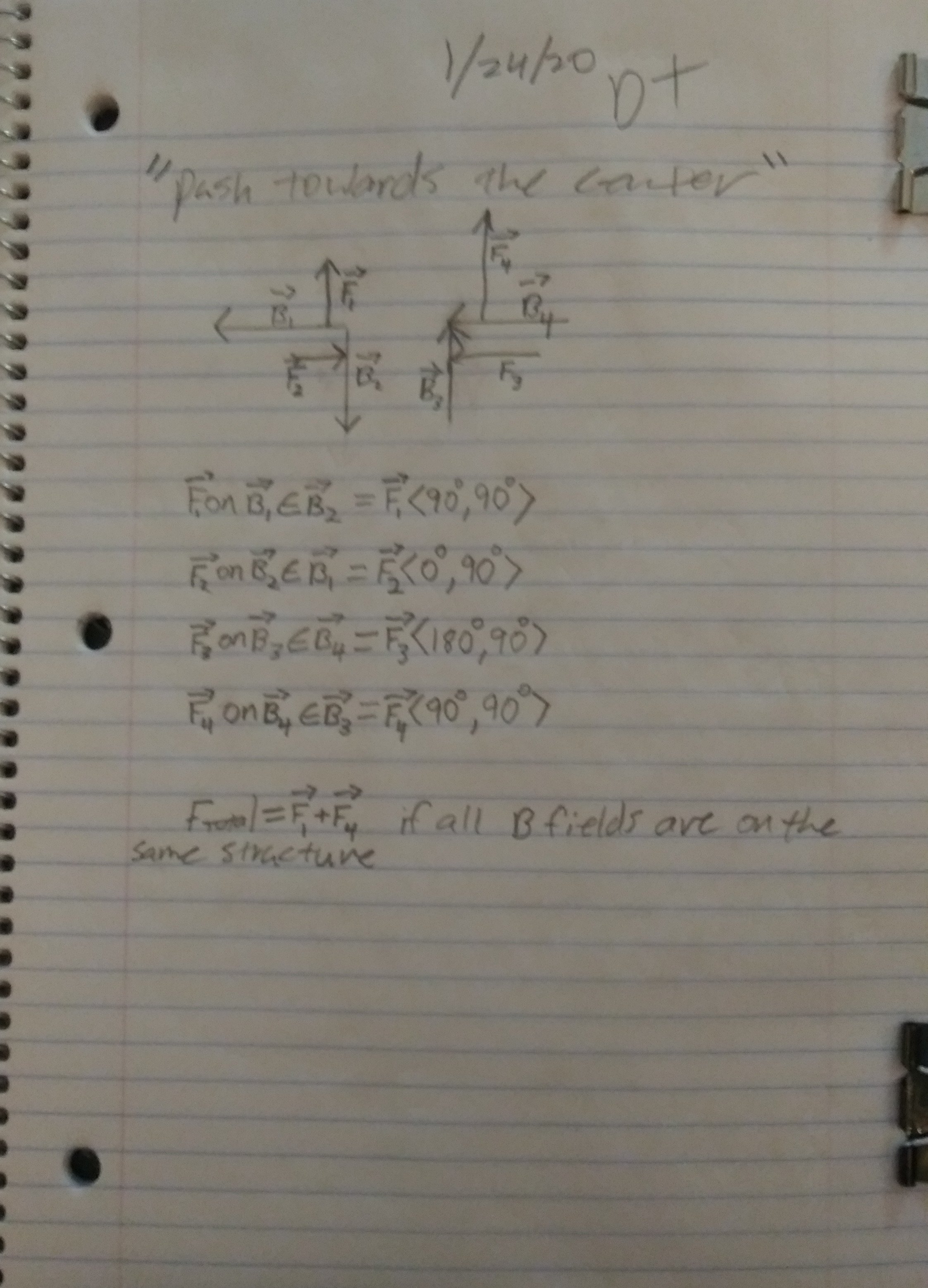 you can push off the center of something. if B4 and B5 were <1T, 90, 90> & <1T, 270, 90> respectively,  and I1 was between them <10A, 0, 180> and Z origin is towards the observer, what is the net force on B4 and B5?