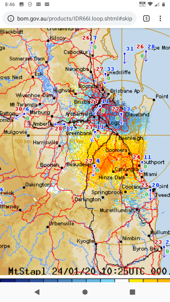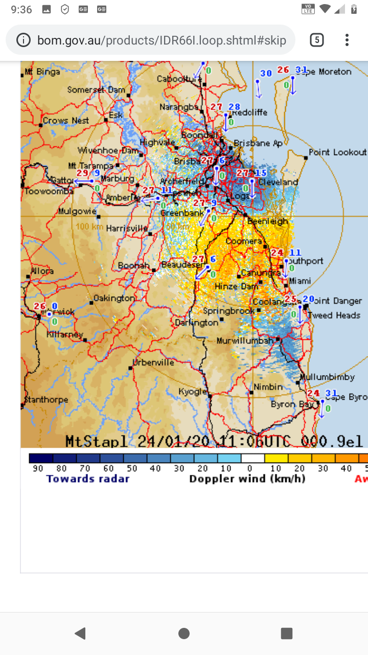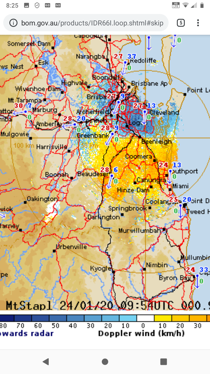 Like the one that dissipated just before Beaudesert in South East Queensland at 11:00 UTC on 24/01/2020 on the Australian Mount Stapylton Dual Doppler Radar?