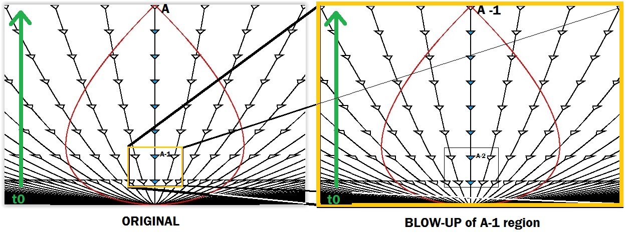At right the orange rectangle is a blow-up of the small region around A-1. The blow-up shows exactly the same kind of graph as the original one.