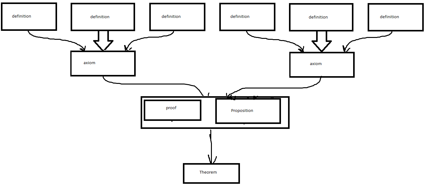 Where all of the different definitions, axioms, and propositions are all connected in a progressive like fashion. Visualizing the definitions and proofs together.