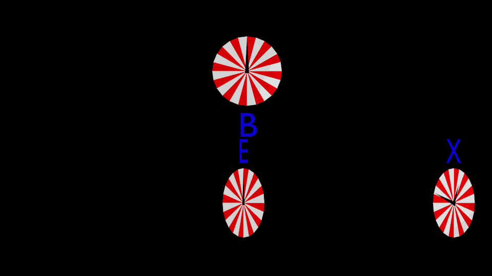 Now the 'virtual observer' in the first animation is 'just some observer' in the same FOR as Earth and X. He knows what time it is in the FOR, independently of what he actually sees on other clocks in the same FOR. He agrees on how fast other objects, not in that FOR (e.g. B in the animations) move. And that is the velocity that counts in relativity, not the direction from the viewpoint of the observer.