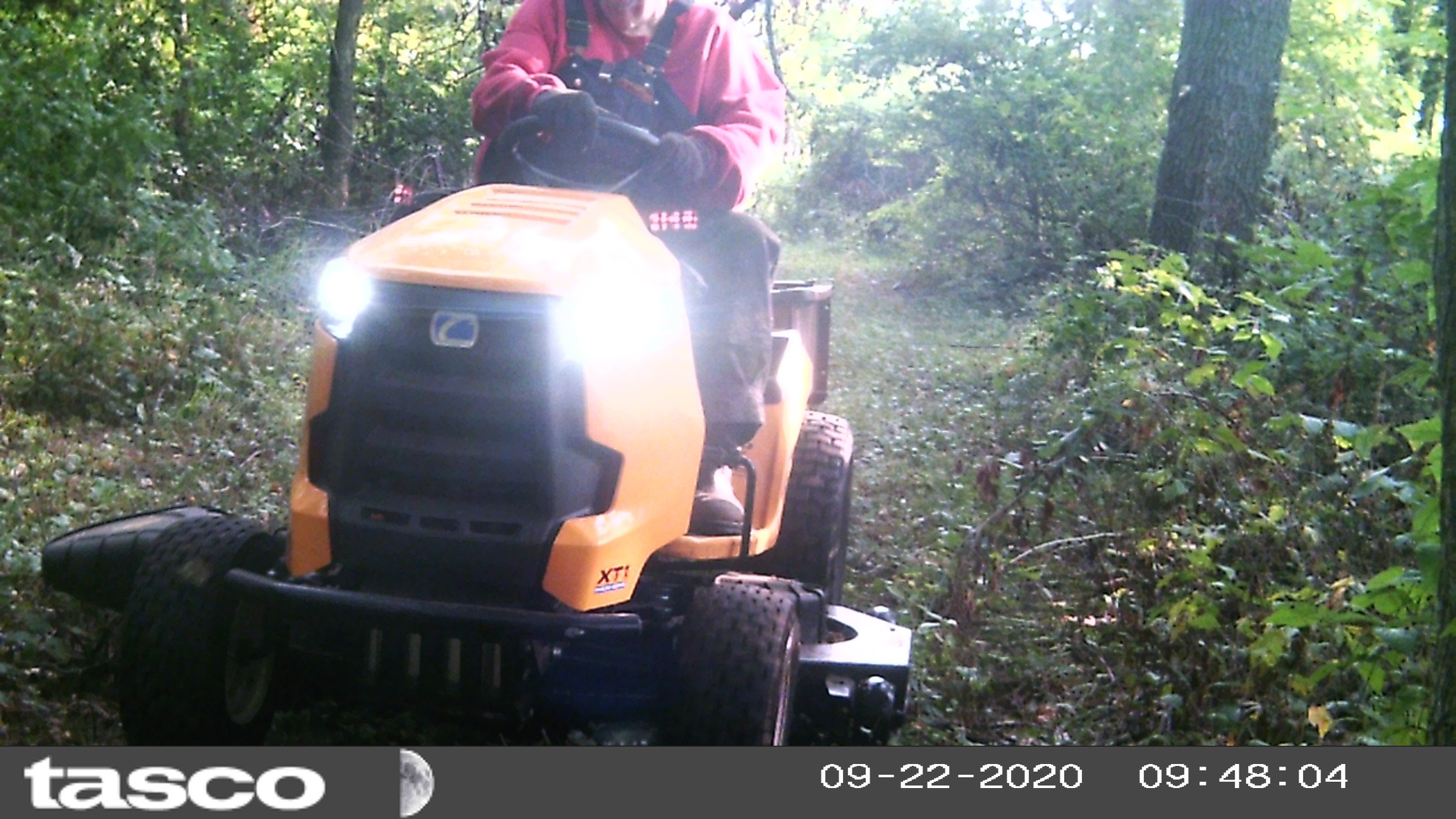 I have a trailcam on my property (a cheap Tasco, about three years old), that has suddenly started to stamp pictures it catches of me when I drive past it on my Cub Cadet.  I has never done this before and only does it to me, not shots of deer, squirrels, racoons, or opossums...just me, but only on my new Cub Cadet...it never did such on the old Cub Cadet.
