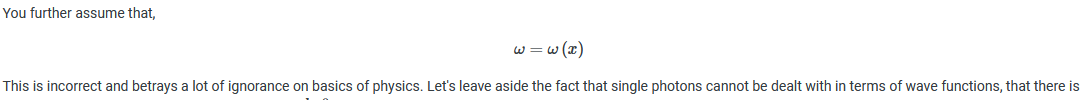 Your limited understanding of physics, is obvious even to me and I have absolutely no idea what all those squiggles actually mean.