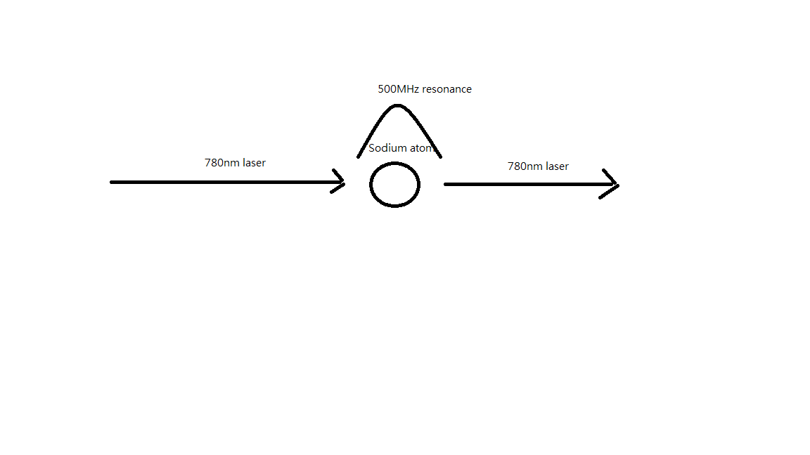 So, when a 780nm laser hits a sodium gas item it would create a 500MHz resonance at the center of the atom @@? I am not getting the picture but I will try to draw it. You can correct it for me anyway you want