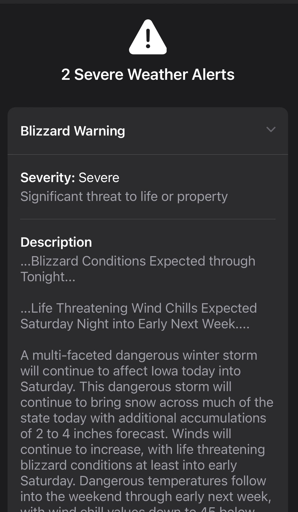 We may not warm above zero degrees (F) on Monday, said Des Moine meteorologist Chad Hahn. I would not be surprised if we dont get above minus 20 degrees for wind chills beginning on Sunday.