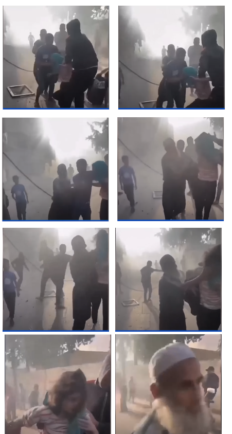 Here's a sequence of "innocent civilians" manhandling a woman that's been identified as Re'im music-festival attendant, Art student Inbar Haiman, after an Israeli air strike,