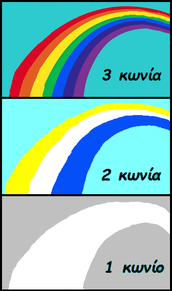can see in the rainbow three(3) colors !!!... ( BLUE-WHITE-YELLOW) !!!...