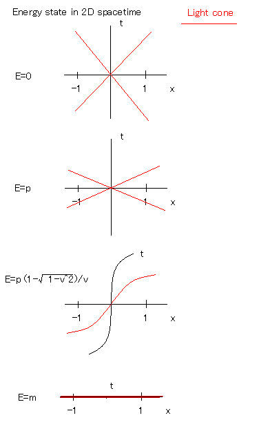 the state, E=m should be described as the vanishment of time axis thus,
