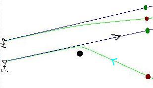 Let´s get the previously-said back onto the topic of light being bent by gravity and extend the scope to the question how you acutally figure out that light is bent. I´ll do so using the image below; it´s the result of a numerical calculation enhaced by my extraordinary skills with windows paint: