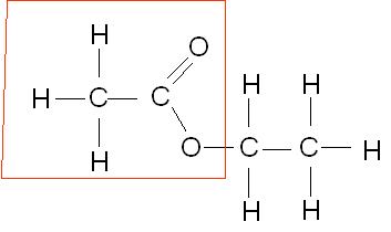 By the way, in esterification, which part is the ethanoate part and which is the ethyl part? I've circled the part which i think is the ethanoate part, am i right?