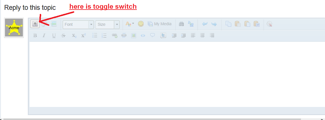 Acme, I am sorry. I did click Reply and got the window. But I see no Edit box with toggle switch icon in the upper left.