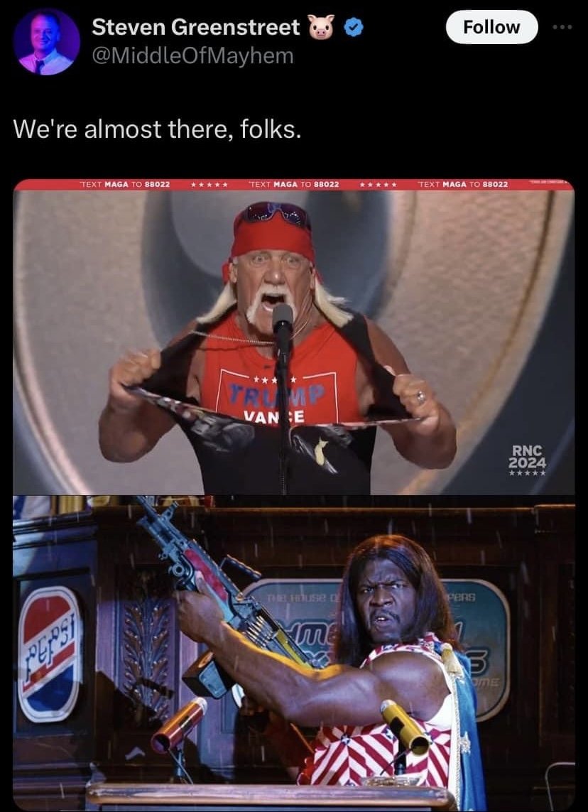 ICYMI  - Conservative activist and podcaster Charlie Kirk first posted, then rapidly deleted this video on his X account after discovering it was a complete hoax made by Brent Terhune, a standup comedian who specialises in impersonating southern state MAGA cult members.