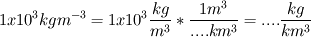 by converting 1x10^3 kg m^-3 to km. see attachment.