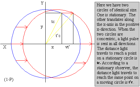 For the single pulse light source radiating outwards, according to the stationary observer the light is received in sequence, by the constituent points of the equidistant ring, in a time sequence from left to right, again.