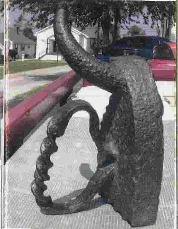 Here's an image of a mould (in heated clay) and the finished product in bronze...it was sandcasted:
