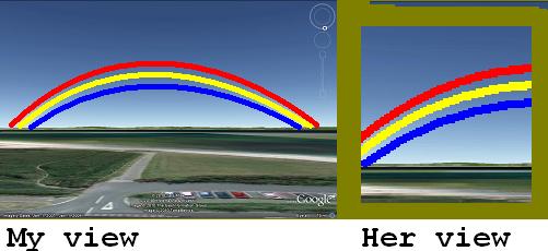 "How can that be?" she said "Surely you have a better view of the rainbow as you're stood nearer the window."