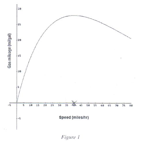 Answer: Take the derivative of m(v) and find it's critical points. The absolute maximum value will be the answers. The x value is the speed, while the corresponding y value is the gas mileage. Use m(v) to calculate the y value, not m'(v).