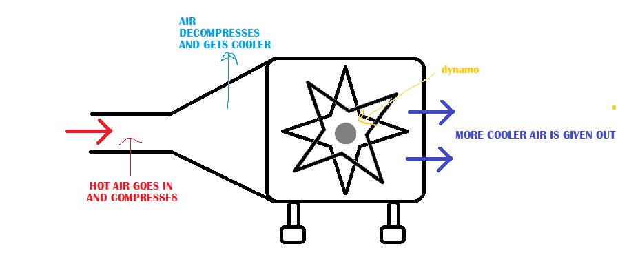 I am attaching a tube which compresses and de-compresses the air so that it cools.the cool air then goes into the air cooler to give out more cool air.