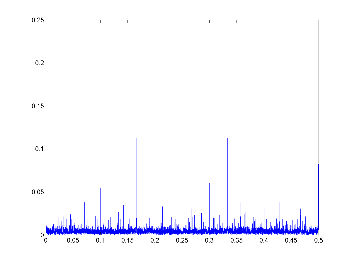 I am however thankful for your quick answer to my original question, and you're quite correct - the average interval certainly isn't 3 or 6 or whatever number. I'm still curious, though, with regard to the fft plot.
