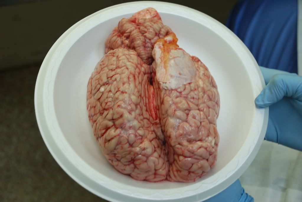 If you look at the brain of a Horse, Dog, or a pig you will notice that the brain looks very similar to a Human brain. If you look ah the cross sections of a Human and Dog brain you will notice that they are almost identical. The convulations in a Human and Dog brain are almost identical.