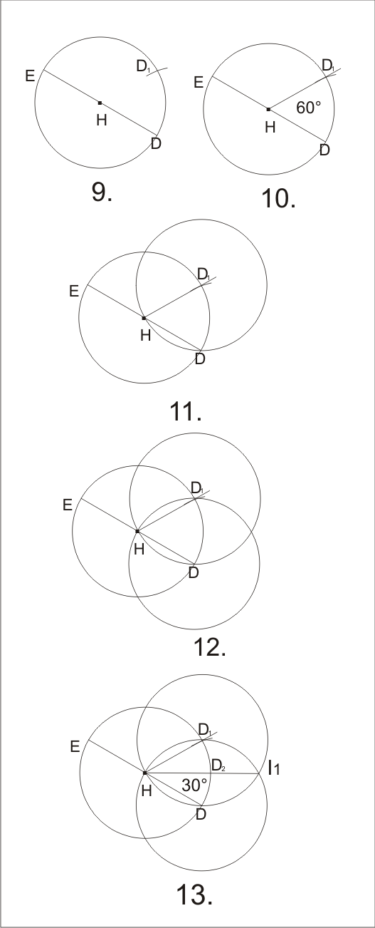 13.straightedge ( ruler ) HI1 , gets the point D2