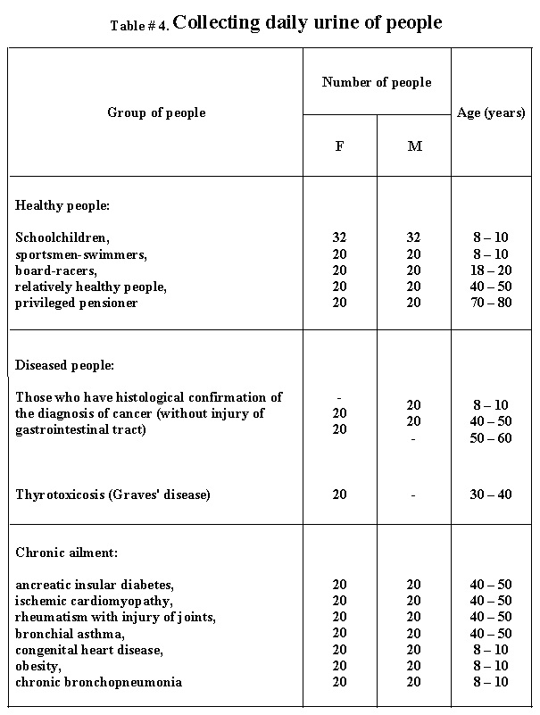 The success has brought oneof many experiments, allowed to reveal long-awaited distinction. Thisdifference consisted in the of quantity free amino acids which are present inthe daily urine of individual organisms. In a consequence, correlation betweenchange of the given parameter and quantity of the general nitrogen in dailyurine has been tracked. Together they represent a level that is the rate ofmetabolism of nitrogen or protein, where higher settings belong to healthy, low- sick organisms.