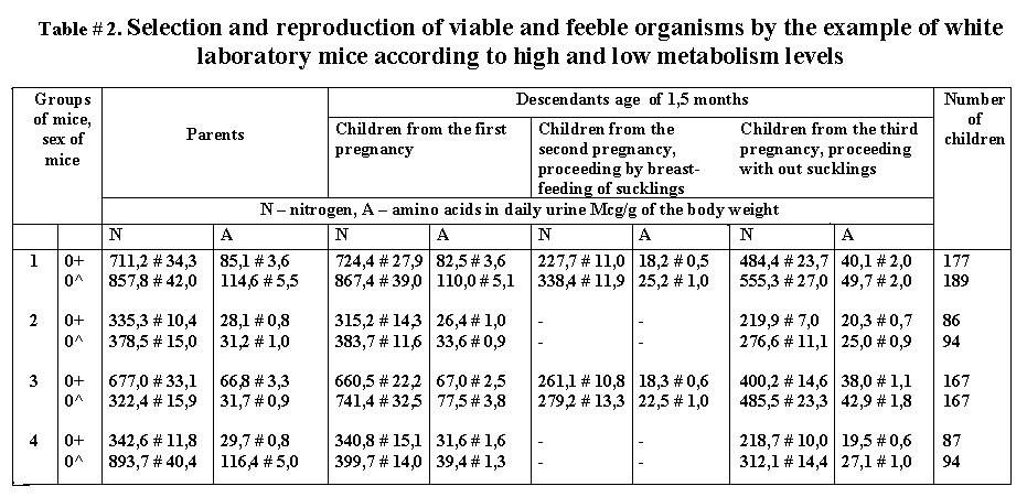 That’s why in order toprevent the weak and get viable offspring prior to conception of the latter, inlaboratory animals has been made the selection of parents with high levels ofmetabolism.