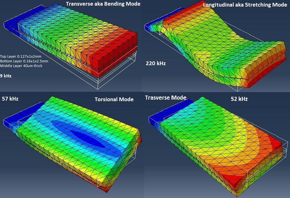 When AC voltage is applied to the piezo layer it tries to expand and contract length wise (long direction).