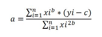 "yi" and "xi" are the result of a complicated analysis on my lab data and I need to find a,b,c in a way that COST(a,b,c) function to be minimum.