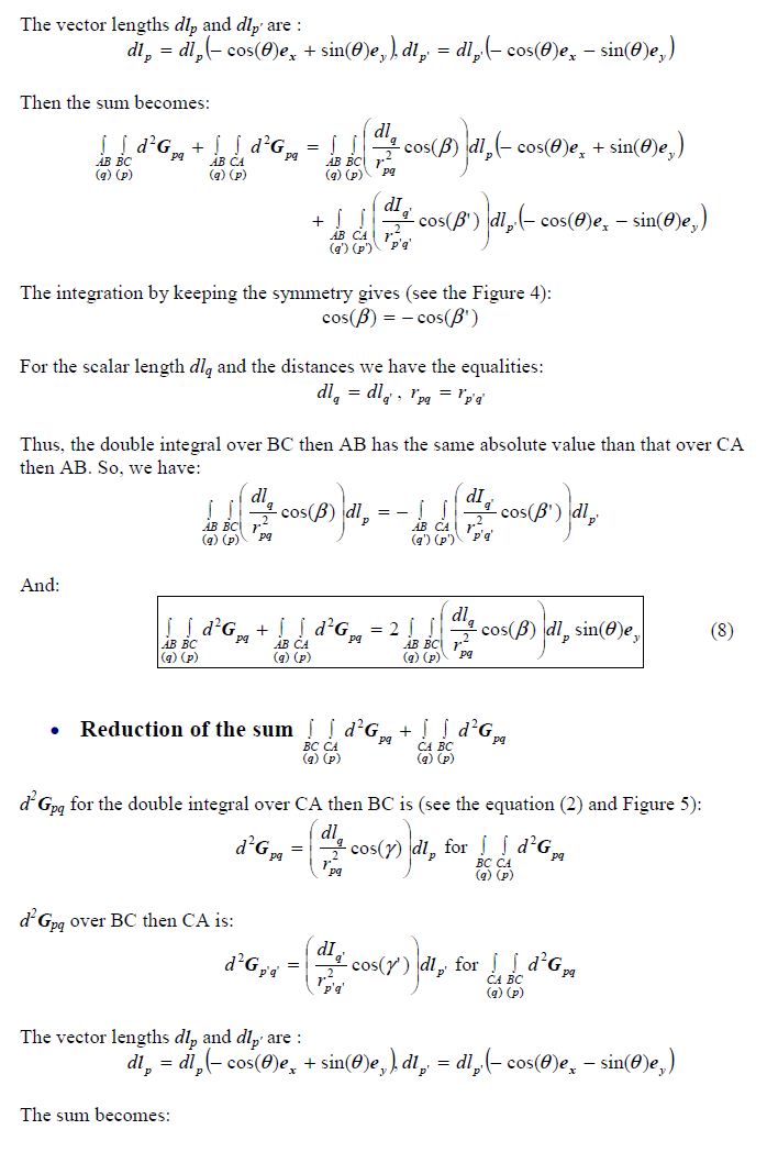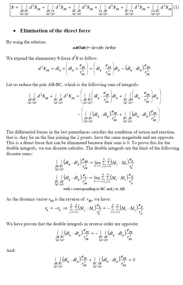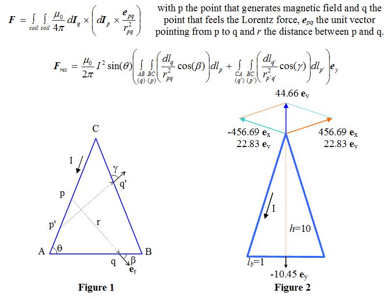 This force is not 0, violating the third Newton's law. In general, this value suffices to prove that the Lorentz force law is flawed, because only one counter example is sufficient to topple a general law. However, to exclude any doubt about the accuracy of this numerical calculation, I have done a rigorous analytical proof, which gives the expression of the dimensionless resultant force for a isosceles triangular coil, Fres given in the Figure.