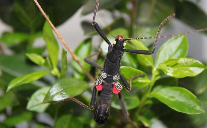 While we're on the subject, I used to own some stick insects. My niece brought back some Peruphasma schultei (black beauty) nymphs from a school trip in London, see the photo on the left, of the last survivor. However, two of the nymphs, were not the same species (see photo on the right). They're fully grown in the pictures, but it was almost impossible to discern that they were different stick insects when they were nymphs.
