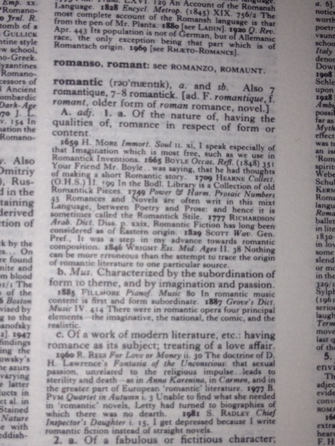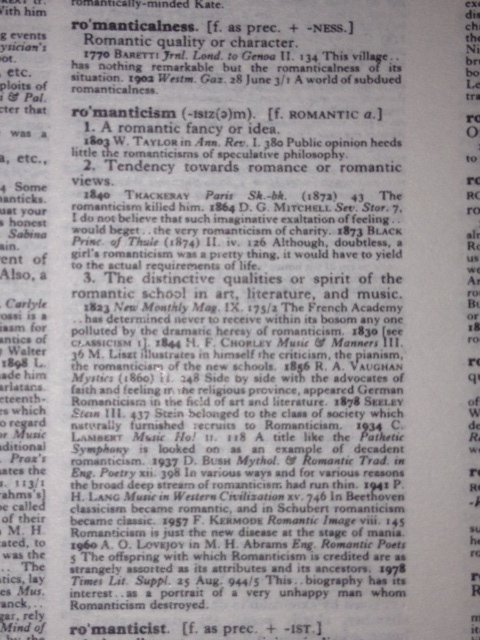 He was on the wind up. Romanticism (in all its forms I believe) comes from Romantic - which comes from Romance - which comes from Romant (the old French for story / tale).