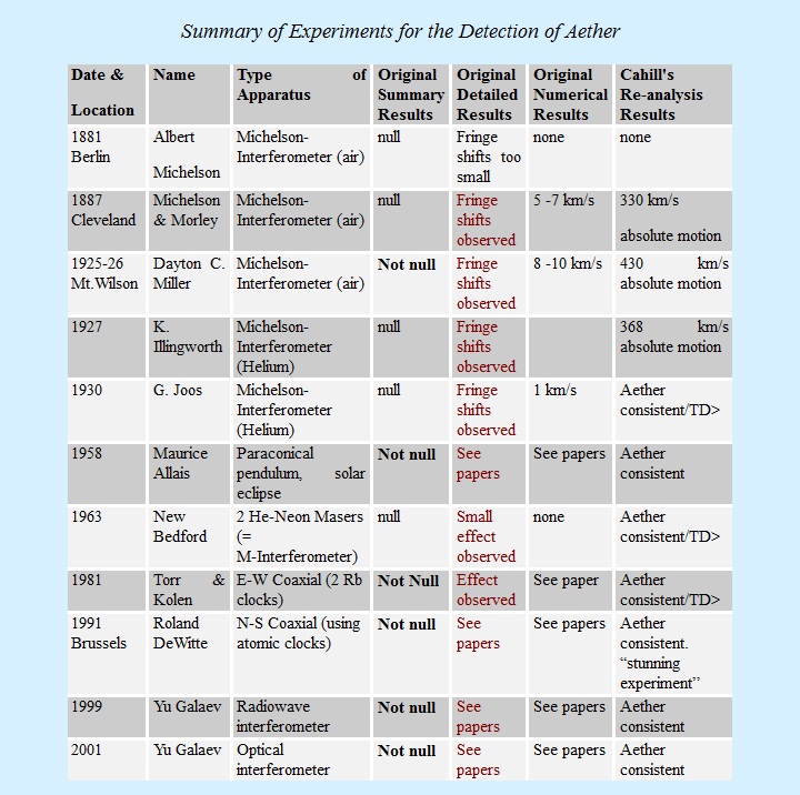 This misses the point: you can't just present the evidence in support of the aether; that's cherry-picking. You must also explain the results that gave a null result — how many of them are there? And also explain the variation John points out: even the three highlighted results run from 330 km/s to 430 km/s. What kind of experimental error bars were on the experiments? Surely not anything like 100 km/s. These results aren't even consistent with each other! They fail the repeatability requirement.