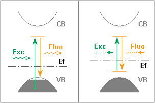 Diffusion and stray luminescence must be minimal at the matrix that holds the emitting atoms. From idealized band diagrams of luminescence: